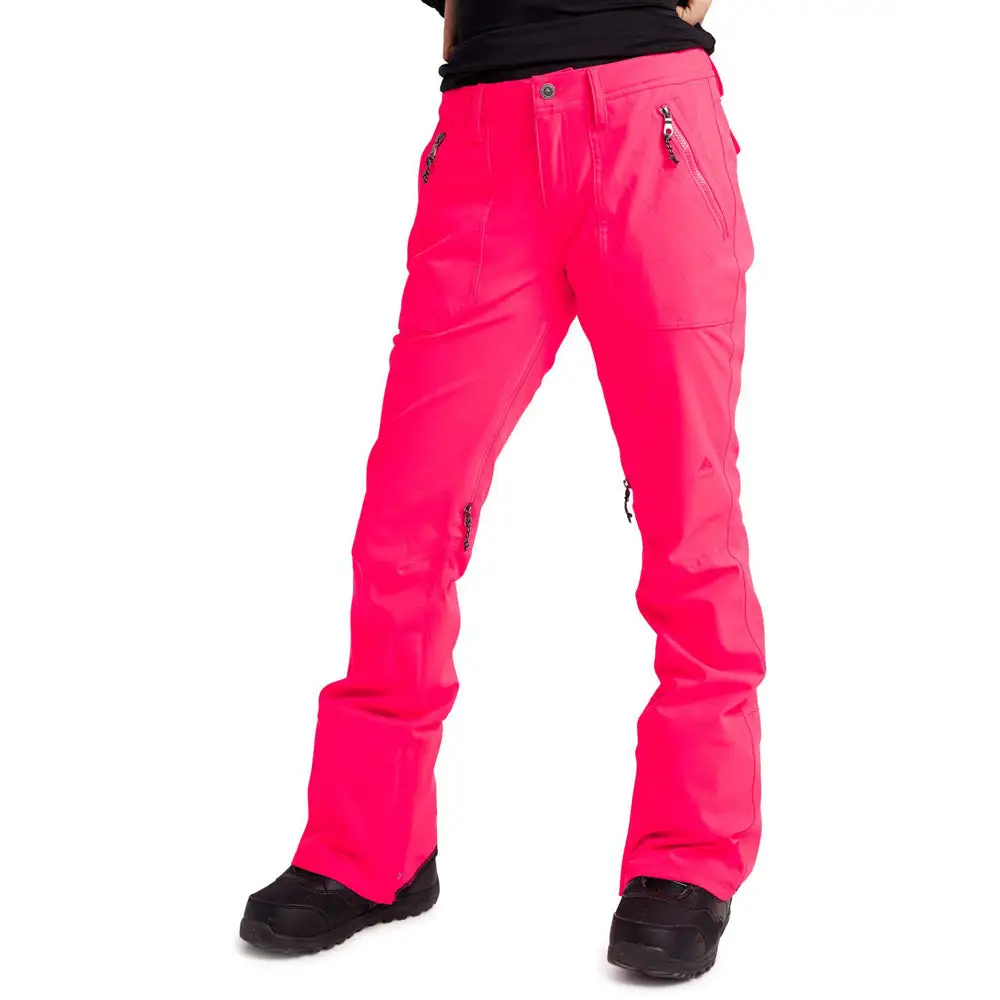 Sag ’em, ride ’em, love ’em. The women’s Burton Vida Pant is slim fit to imitate your favorite low-rider jeans, yet hides a wealth of convenient features to keep you comfortable in all conditions. A zonal-mapped stretch mesh and taffeta lining adds mobility and moisture wicking where you need each one most. There’s just enough room for layering when the mercury dips, and inner thigh vents let air out when things get heated. Quilted hand-warmer pockets and exposed zippers satisfy your inner fashionista, while the long list of standard features ensure you’re ready for anything the mountain throws at you.