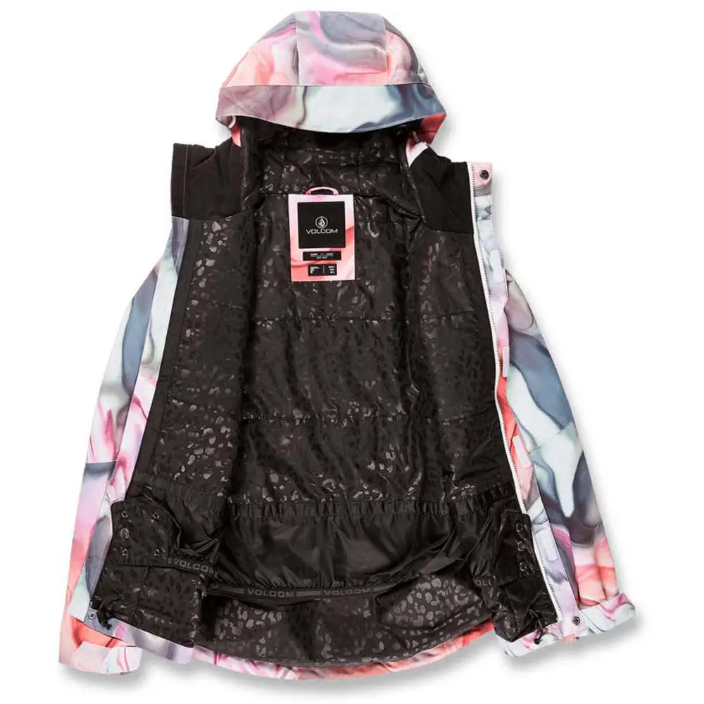 Keep the cold on lockdown with the Bolt insulated snowboard jacket for women. Slim and contoured for feminine coverage, the V-Science 2-layer construction combines with 80g of insulation for toasty wet weather performance and maximum comfort. Critically taped seams and Volcom’s patented Zip Tech jacket to pant interface work together for the ol’ one-two on waterproof protection. A hidden toggle cinch hood makes it easy to dial in that extra coverage on the move and a Super Suede chin guard keeps it soft on the inside.